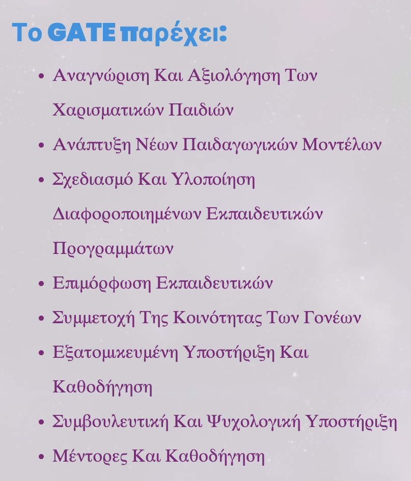 επιπέδου σε κάθε χαρισματικό και ταλαντούχο μαθητή ανάλογα με τις δικές